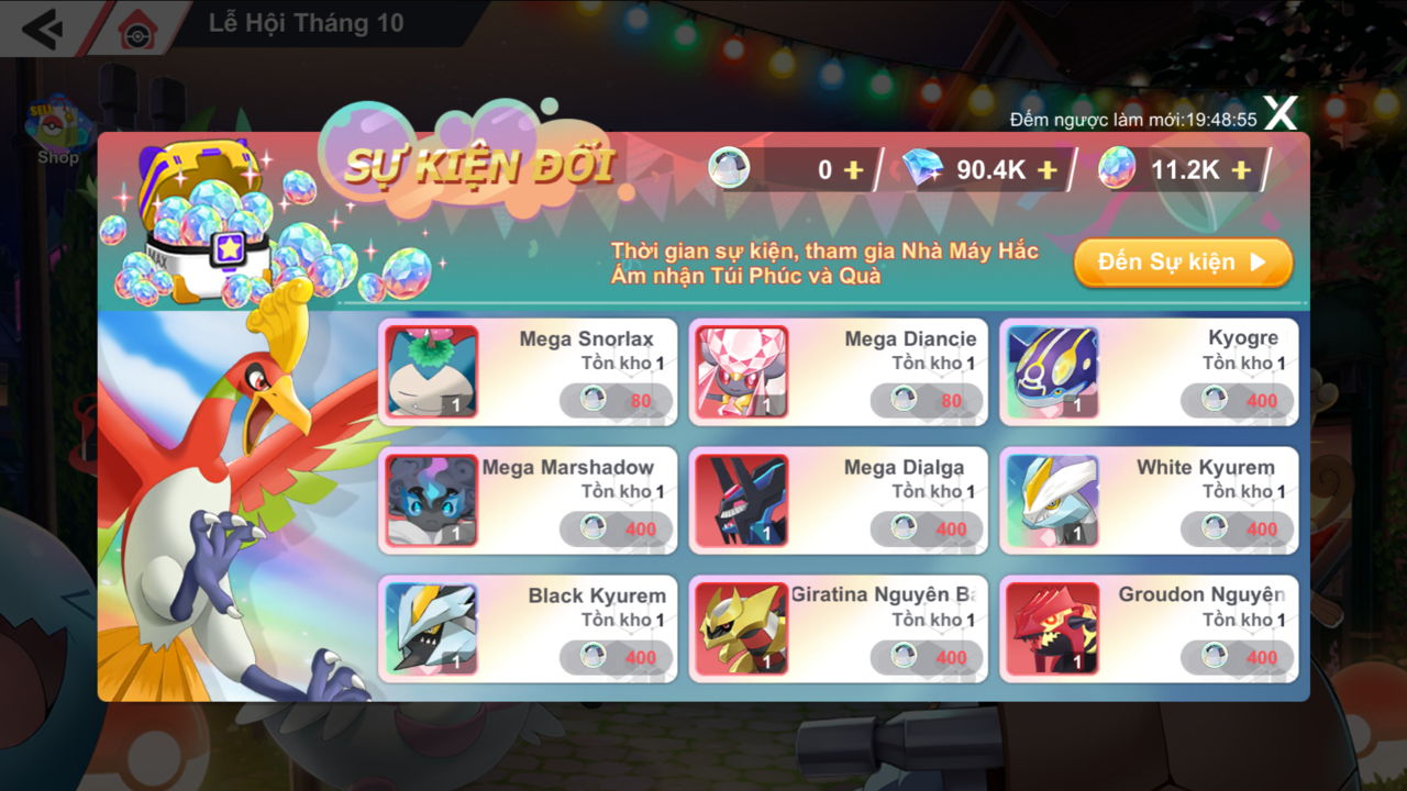 + Pokémon SSR/SP (Liên Kết Linh Hồn): Mega Snorlax, Giratina Nguyên Bản, Groudon Nguyên Thủy, White Kyurem, Black Kyurem, Mega Marshadow, Mega Diancie, Kyogre Nguyên Thủy, Mega Dialga và Mega Mewtwo X.