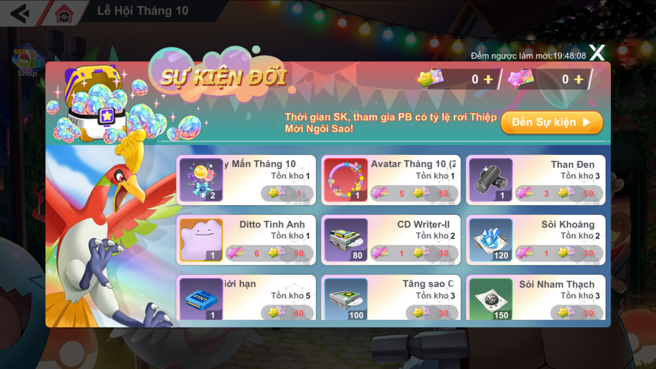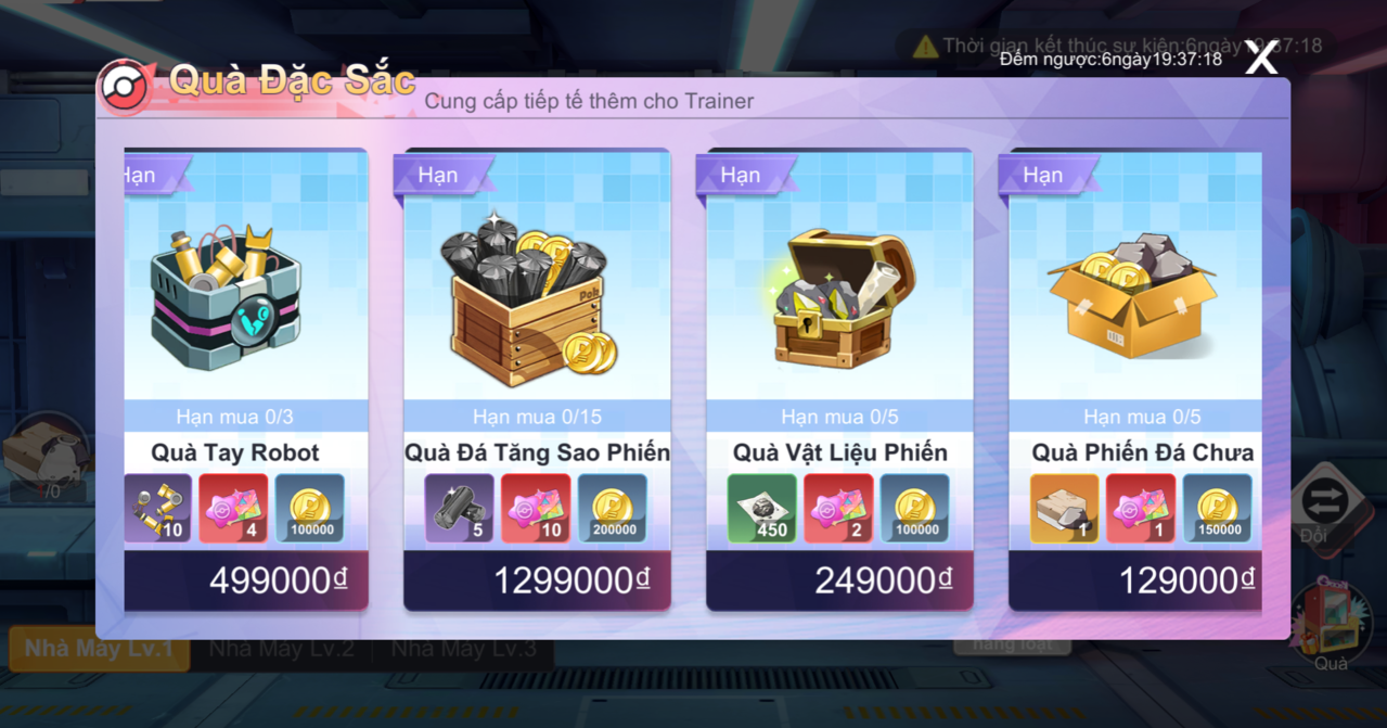 - Đối với Thiệp Mời Ngôi Sao+ (item cao cấp đổi sự kiện Lễ Hội Tháng 10), HLV mua các gói hạn giờ Quà Nhà Máy.