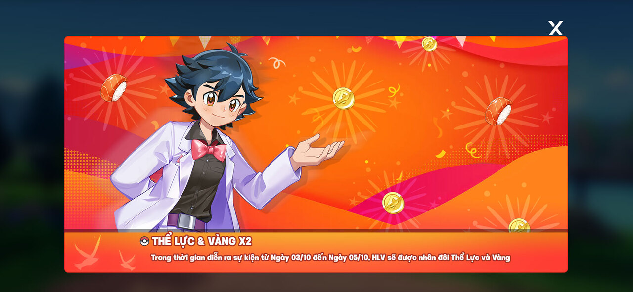 - Từ Ngày 03/10 đến Ngày 05/10, HLV sẽ được nhân đôi Thể Lực và Vàng.