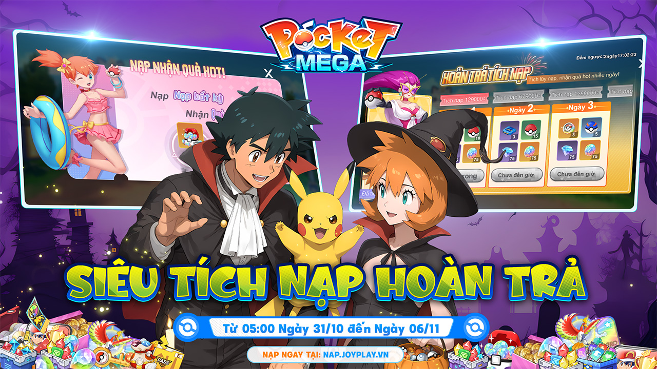 Misty xin giới thiệu siêu ưu đãi đặc biệt, lần đầu tiên xuất hiện tại Pocket Mega nhân dịp Halloween với giá trị ưu đãi lên tới 1000%. HLV đừng bỏ lỡ!