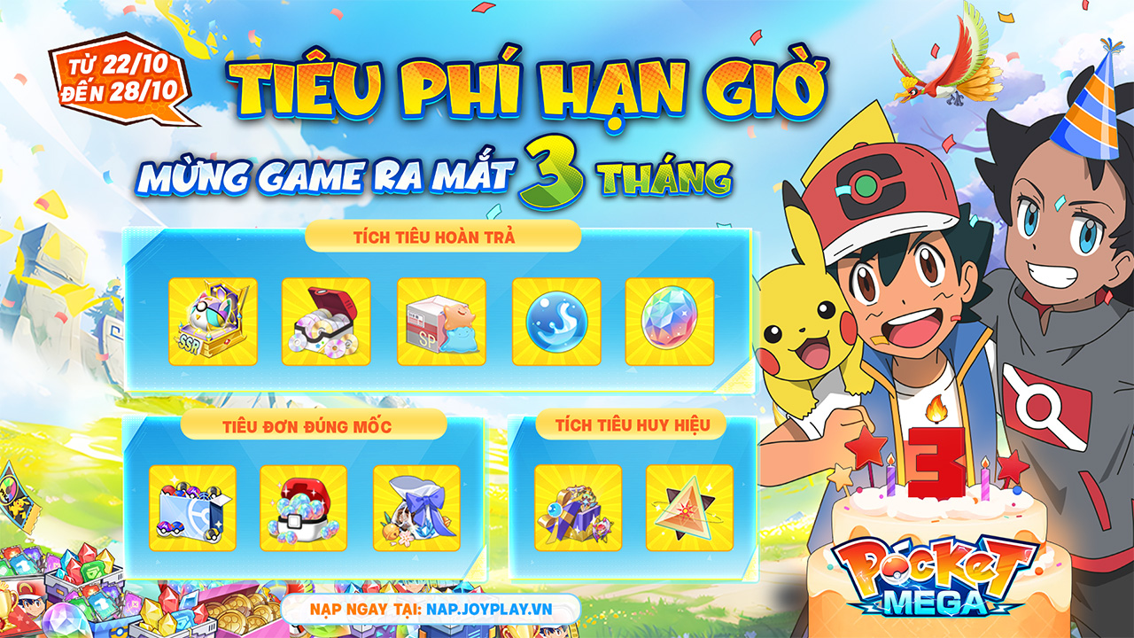 Mừng 3 tháng ra mắt Pocket Mega, Misty xin giới thiệu chuỗi sự kiện Tiêu Phí Hạn Giờ - Mừng 3 Tháng Ra Mắt với nhiều ưu đãi hoàn trả cực khủng!