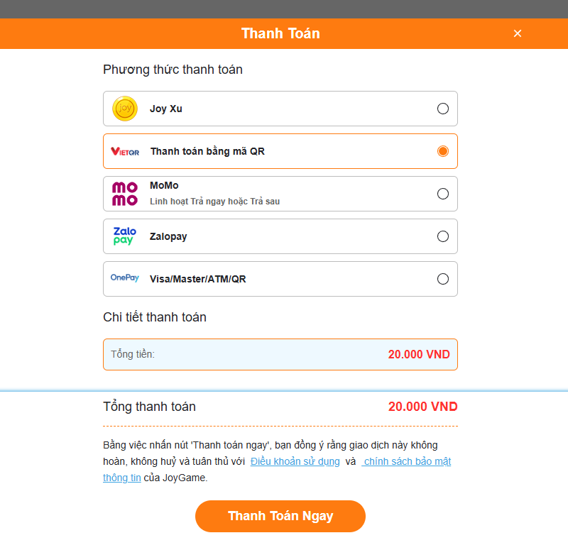 - Sau đó HLV vào link sự kiện Ưu Đãi Flash Sale 10.10, tiến hành chọn gói ưu đãi muốn mua rồi thanh toán bằng phương thức thanh toán Joy Xu (có thể thanh toán bằng các hình thức khác)