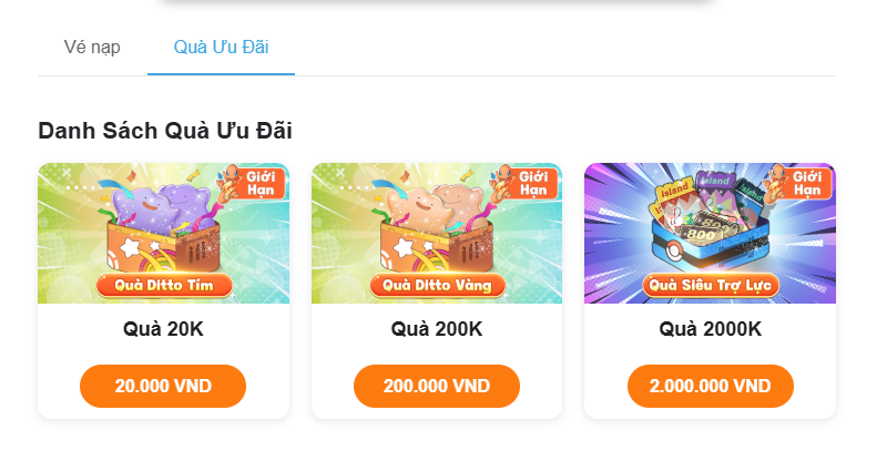 - HLV mua các Gói Quà Ưu Đãi tại link: https://nap.joyplay.vn/game/7?tab=gift-codes